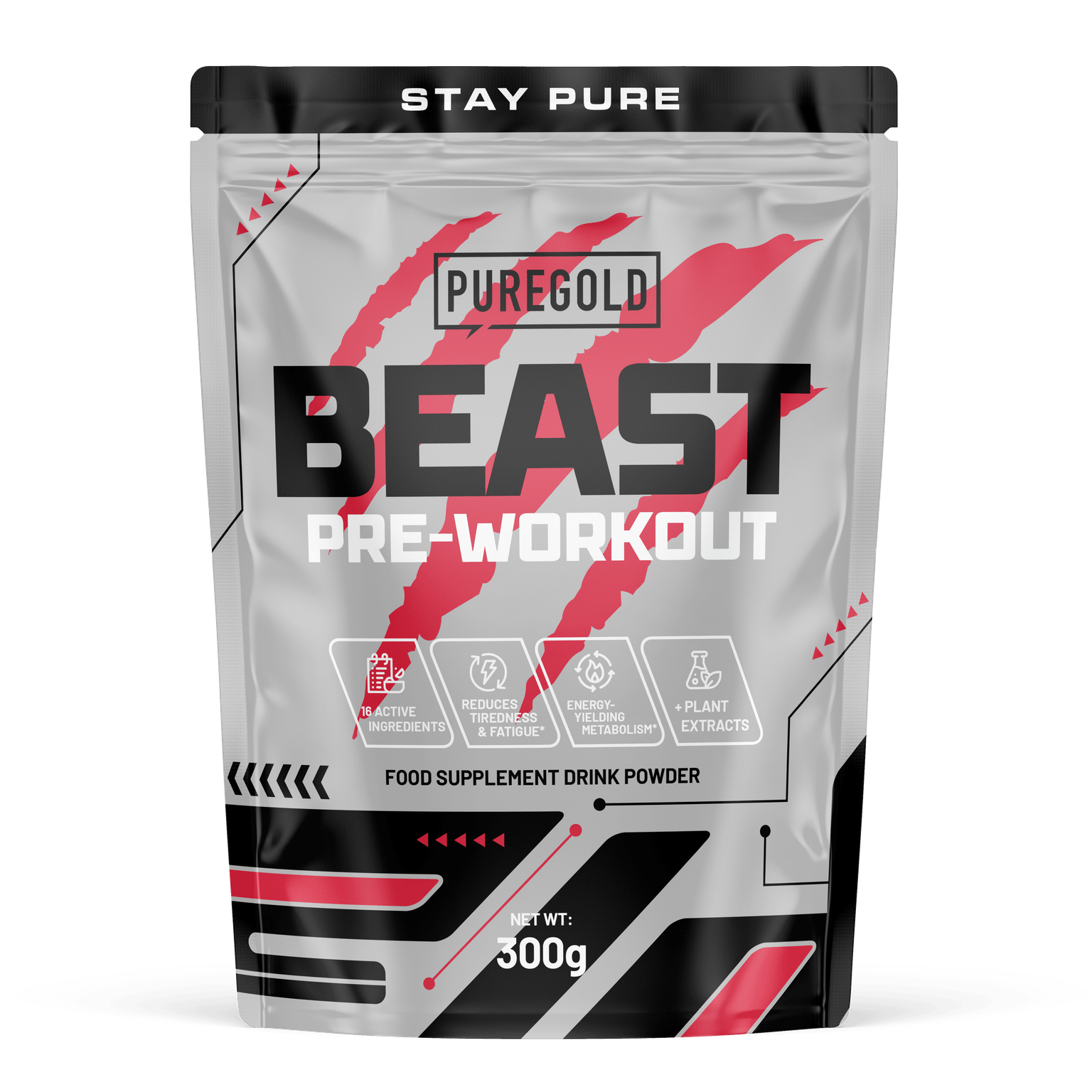 Összetevők: L-arginin, L-citrullin DL-malát 1:1, béta-alanin, izomaltulóz+, L-tirozin, L-taurin, L-karnitin-L-tartarát, aroma, L-glutamin, savanyúságot szabályozó anyag (vízmentes citromsav), édesítőszerek (aceszulfám K, szukralóz), vízmentes koffein, csomósodást gátló anyagok (szilícium-dioxid, kalcium-foszfát), Garcinia Cambogia (Garcinia cambogia) 4:1 gyümölcshéjkivonat, zöld kávé (Coffea robusta L.) 12:1 babkivonat, zöld tea (Camellia sinensis) 3-4:1 levélkivonat, L-arginin-alfa-ketoglutarát 2:1, cink-biszglicinát, fekete bors (Piper nigrum) 50:1 terméskivonat, színezék (Ponceau 4R***), piridoxin-hidroklorid. +Az izomaltulóz glükóz- és fruktózforrás.