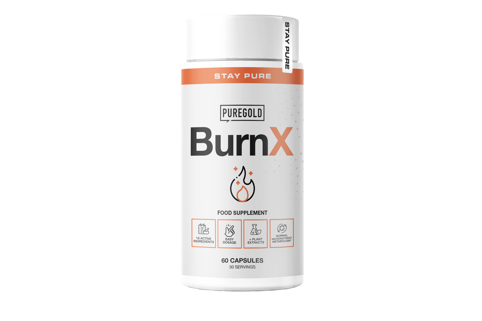 Összetevők listája: L-taurin, kapszulahéj (marhazselatin, színezékek (vasoxidok és vas-hidroxidok), L-tirozin, kalcium-piruvát, acetil-L-karnitin-hidroklorid, koffein vízmentes, kitozánpor, Garcinia cambogia (gyümölcshéj) 4:1 gyümölcshéjkivonat , Ginzeng 4:1 gyökérkivonat, gyömbér (Zingiber Officinale), 20:1 gyökérkivonat, Kóla Dió (Cola acuminata) 5:1 terméskivonat, alfa-liponsav, Zöld kávé (Coffea robusta L.) 12:1 babkivonat, Zöld tea (Camellia sinensis) levélkivonat, kurkuma (Curcuma longa L.) 45:1 gyökérkivonat, fekete bors (Piper Nigrum) 50:1 terméskivonat, króm-pikolinát.