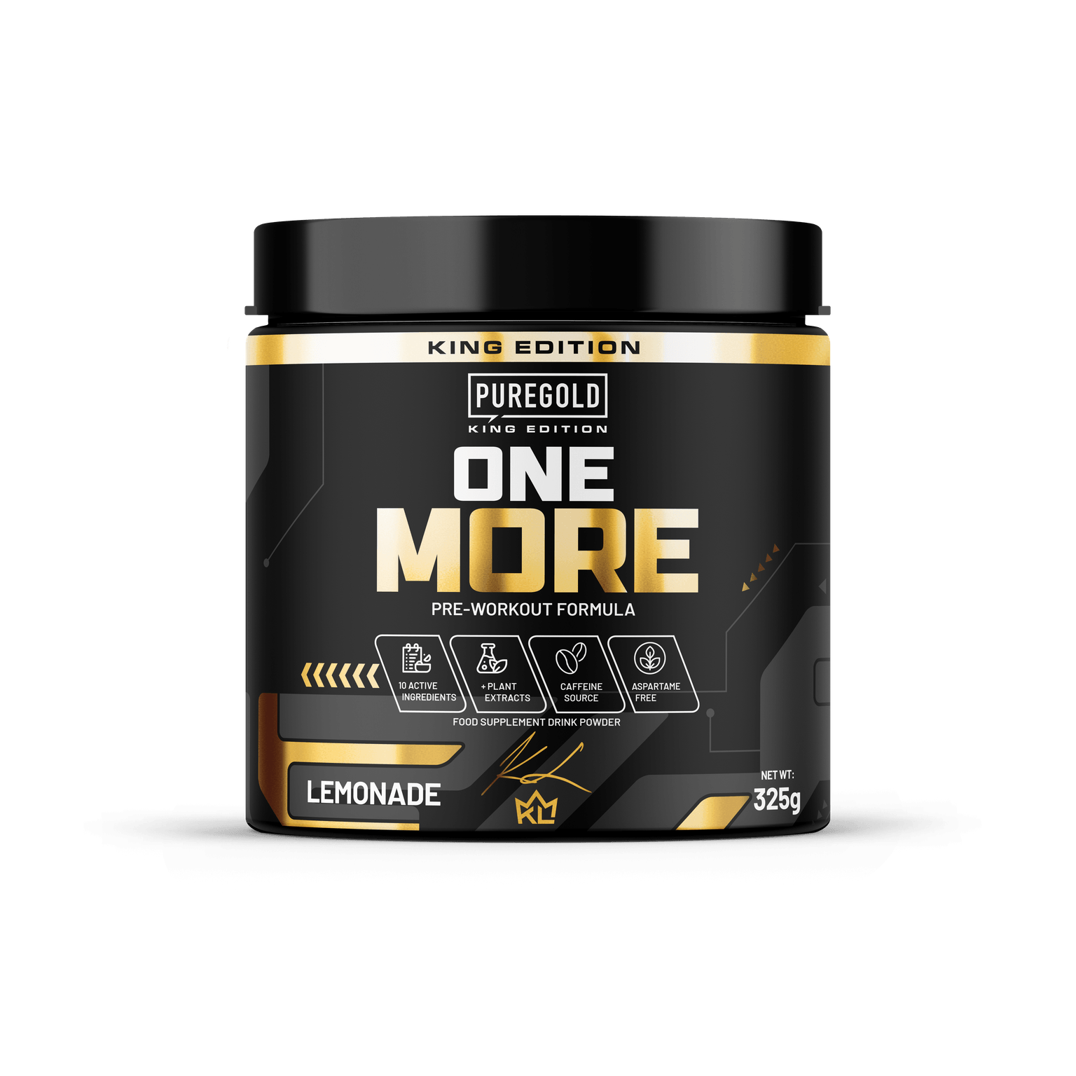 King Edition étrend-kiegészítő italpor citrullin-maláttal, HMB-vel, arginin-alfa-ketoglutaráttal, kolinnal, himalájai sóval, koffeinnel és növényi kivonatokkal.